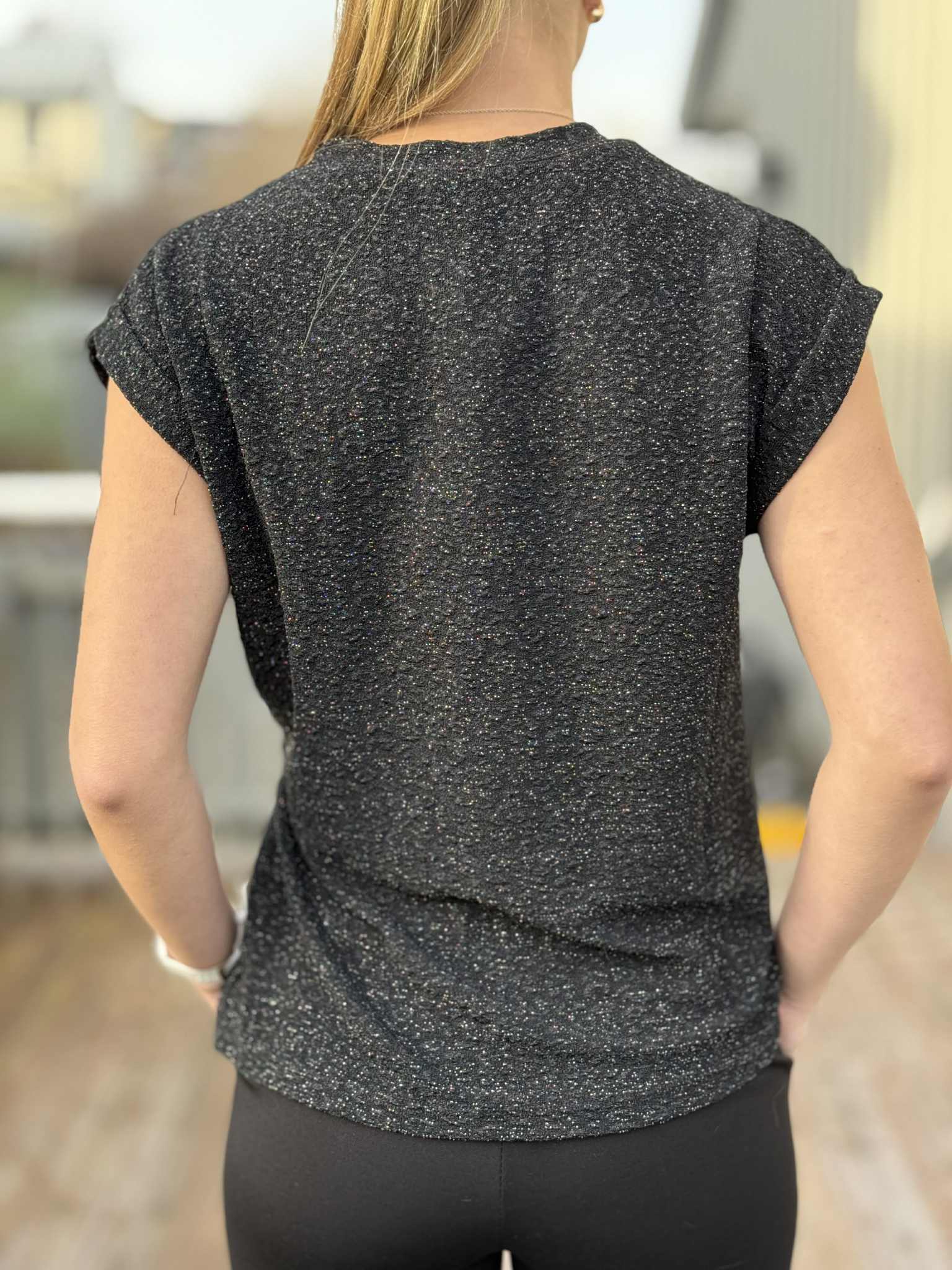 Denne sorte, glitrende toppen er perfekt når du vil være casual – men fortsatt pynte deg litt.