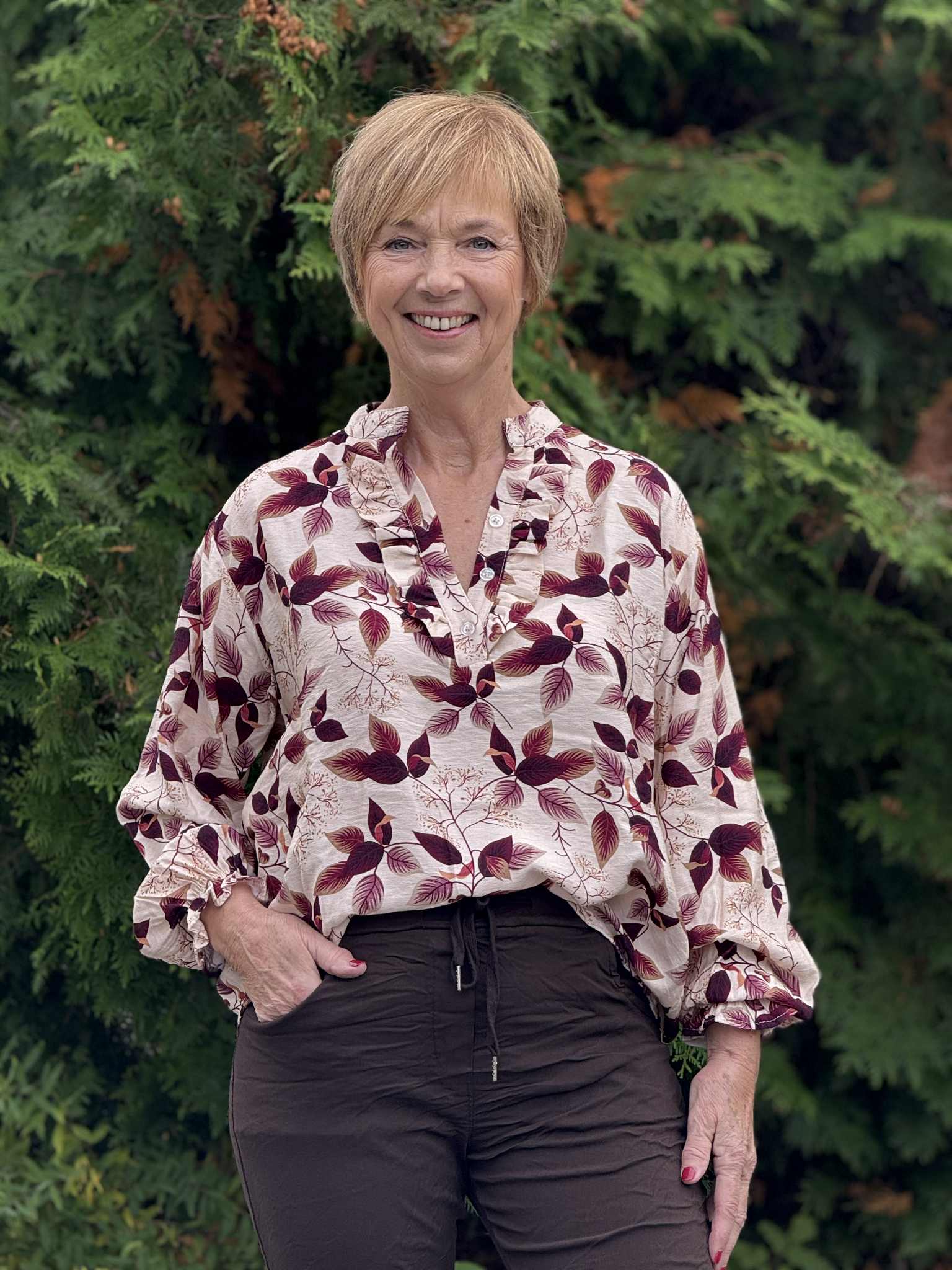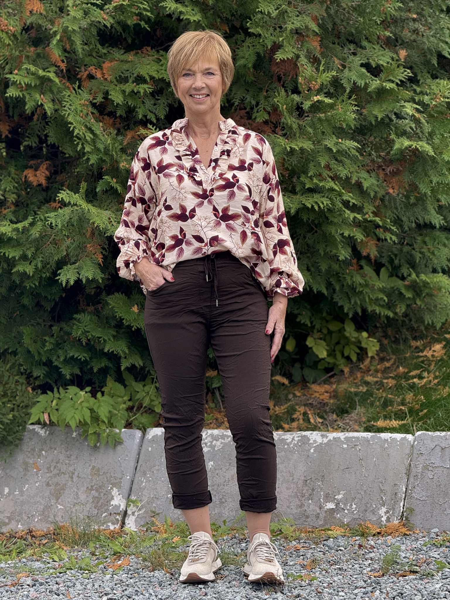 Veldig fin og lett bluse, med print i farger som går til flere farger i f.eks bukser.