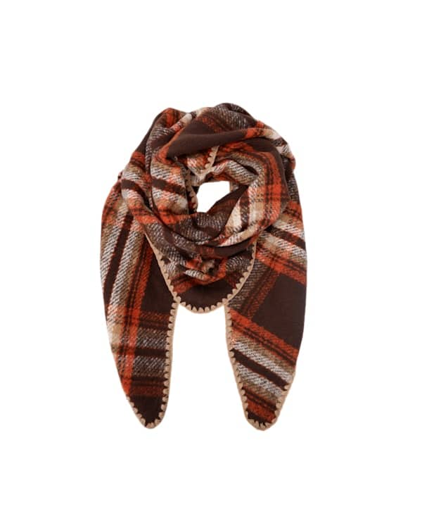 Ett mykt, trekantet vinterskjerf som holder deg varm, med rutemønster.